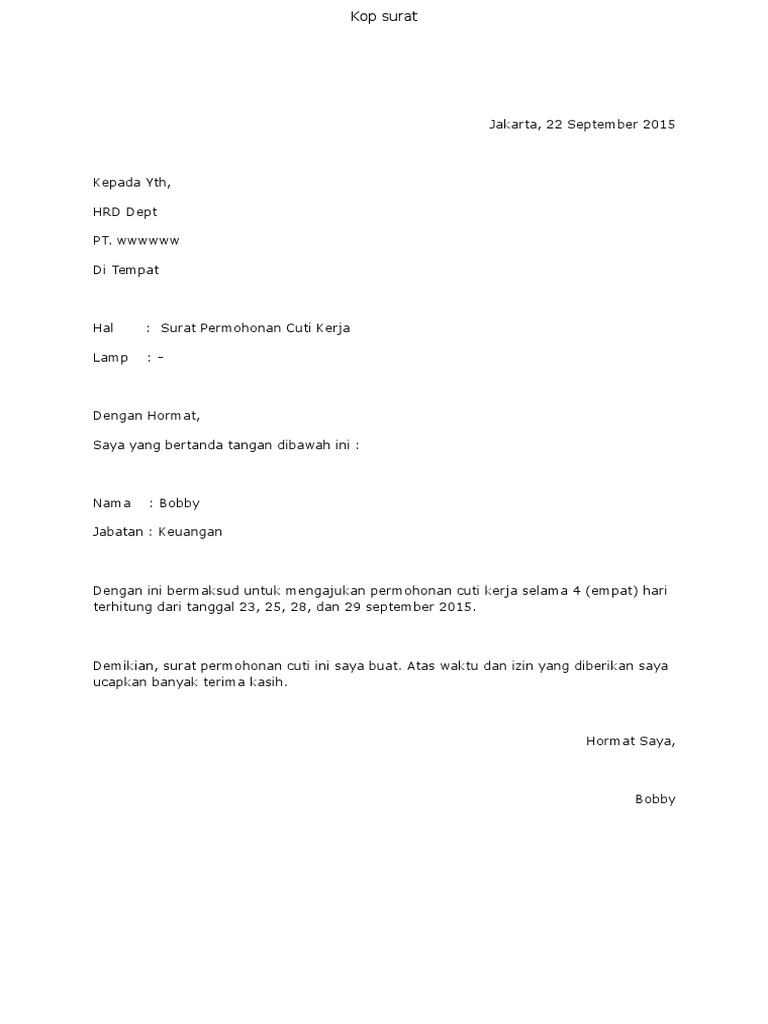 Contoh surat mohon cuti untuk anak have an image from the other contoh surat mohon cuti untuk anak in addition it will include a picture of a kind that might be observed in the gallery of contoh surat mohon cuti untuk anak.