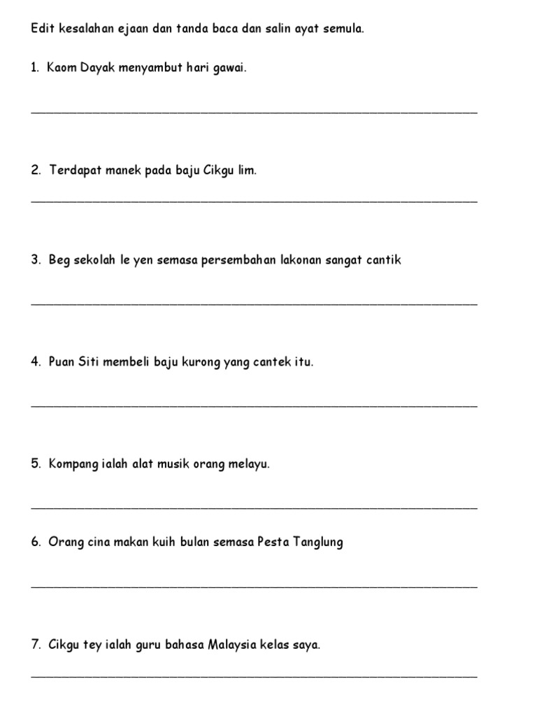 Namun selain empat tanda baca itu, ternyata masih ada beberapa tanda. Jenis tanda baca jenis & kegunaan tanda baca. Kalau dalam pelajaran bahasa melayu, sering dititik beratkan tentang tanda baca ni, begitu jugak dalam bahasa inggeris. Sebenarnya untuk memudahkan anda belajar bahasa inggris tentang apapun itu, anda harus senang dengan bahasa inggris terlebih dahulu. Susun semula ayat di bawah menjadi ayat yang lengkap. Tanda baca merupakan salah satu hal yang penting dalam penggunaan bahasa inggris baik lisan maupun tulisan. Latihan tatabahasa (tanda baca) bagi murid tahun 3. Selain untuk menunjukan tata kata dan struktur pada suatu tulisan, tanda baca juga berfungsi sebagai tanda jeda dan mengatur intonasi. Menggunakan perkataan bergaris tanda baca dan pemahaman ujian bulanan tahun 2 latihan pemahaman tahap 2 pemahaman tahun 3. Menurut laman id.wikipedia.org, tanda baca didefinisikan sebagai simbol yang berfungsi untuk memberi penekanan tertentu padasuatu tulisan, utamanya kalimat. Tanda baca ialah simbol yang bertindak untuk menunjukkan struktur serta penyusunan penulisan dan biasa juga, untuk intonasi dan beberapa aspek dalam penggunaan tanda baca adalah stilistik dan oleh itu, bergantung kepada pilihan penulis. Penggunaan tanda baca yang tidak tepat akan mengelirukan pembaca. Tv pendidikan sriti darul amilin.
